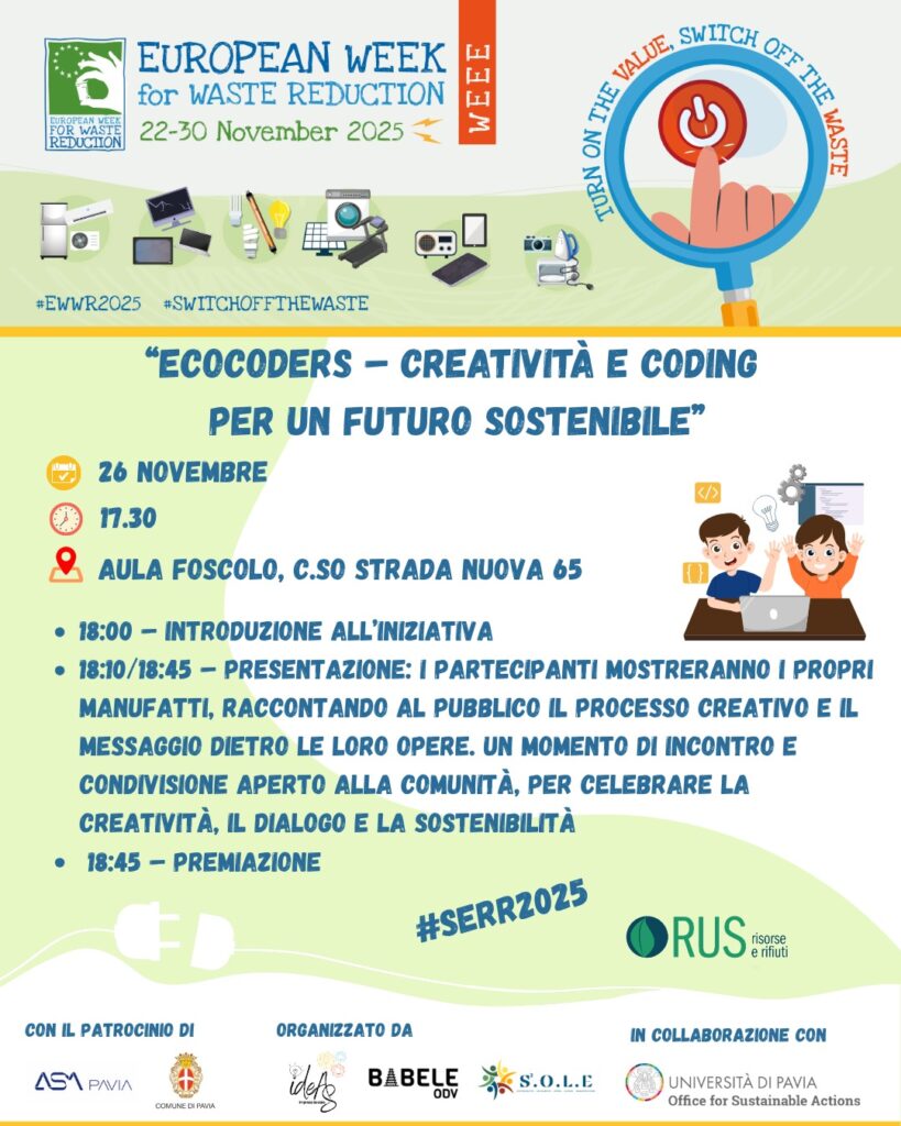 - 18:00 – Introduzione all’iniziativa: presentazione della Settimana Europea per la Riduzione dei Rifiuti e degli obiettivi di EcoCoders